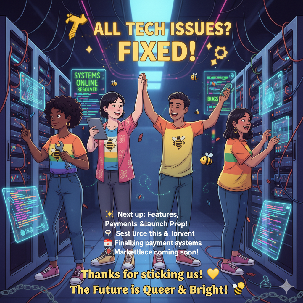 With queer love, — The PrideHives Team🎉 All tech issues? Fixed. ✨ Next up: features, payments & launch prep! Hey PrideHivers 🐝 We’re thrilled to announce that all technical issues have been resolved — the site is stable, the styles are shining, and the Like buttons are loving again 💅🏽💖 Now it’s time to shift gears: 🔧 Setting up extra features & options 💳 Finalizing payment systems 🛍️ Creating marketplace categories 💬 Building our community forum We’re almost ready to open the gates to the wider public — and you’re here at the beginning of something legendary 🌈 Thanks for sticking with us through the baby-phase 😏 Your feedback, patience, and queer joy mean the world 💛 📣 Spot something weird? Report it in our [Tech Support group]! With queer love, — The PrideHives Team 🐝0 Comments 0 Shares 22 Views 0 Reviews2