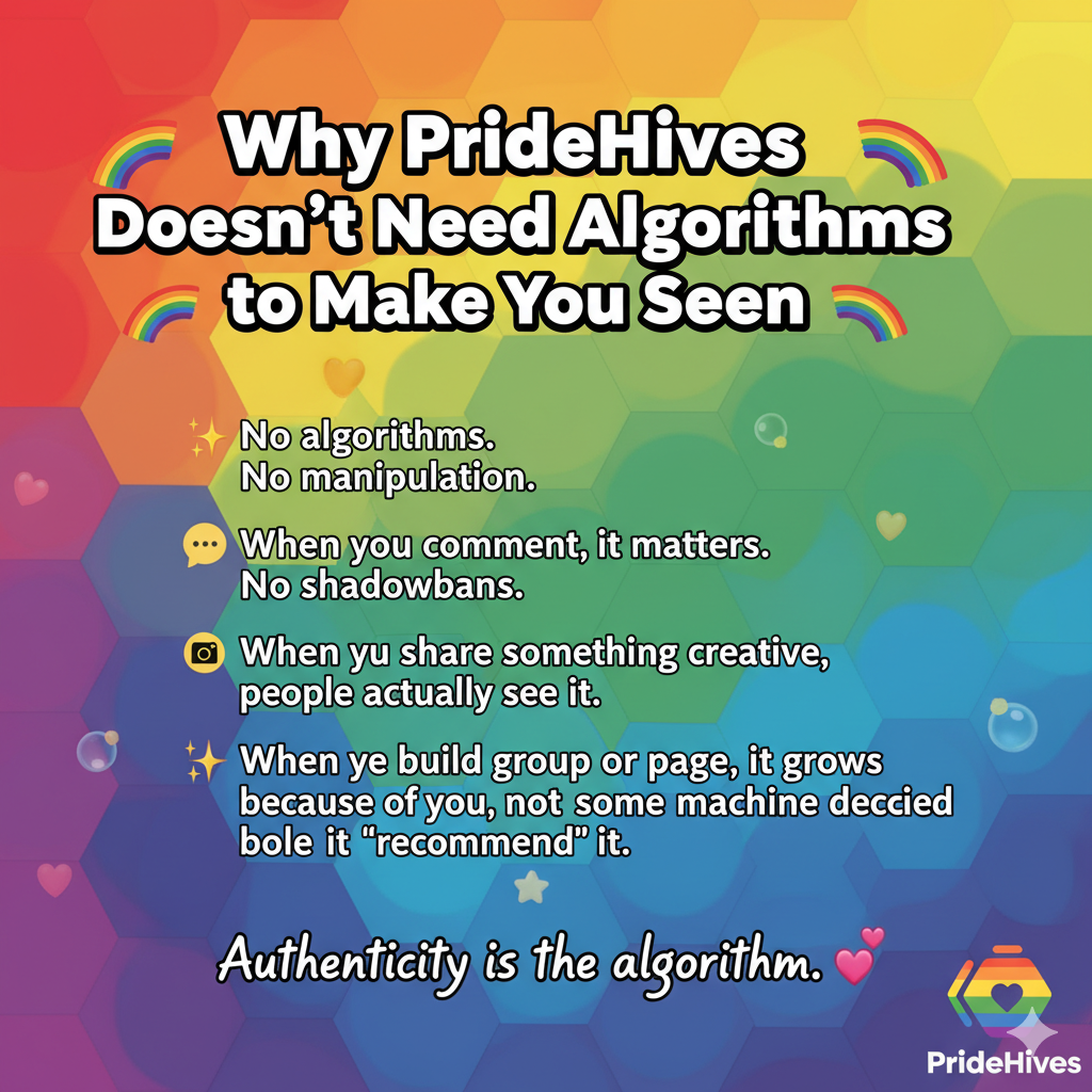 #PrideHives #NoAlgorithms #BeSeen #QueerCommunity #LGBTQIA #SocialMediaFreedom #AuthenticVisibility