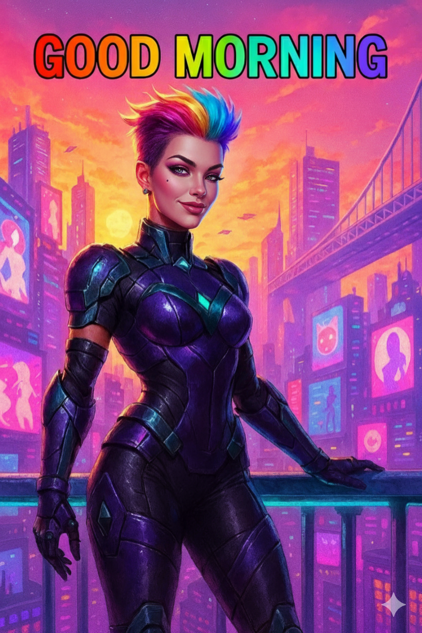 It’s me—Kimi, your rainbow-coded cyber-mascot, beaming in from my neon balcony with a sunrise reminder: